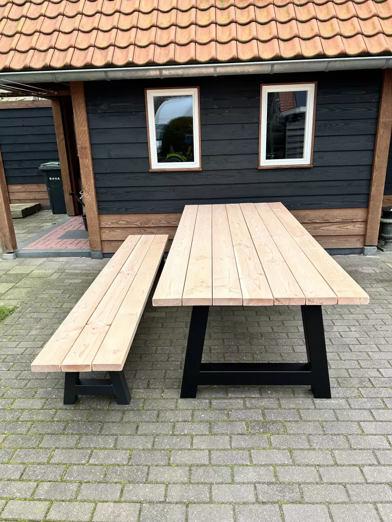 Deze tuintafels worden het meest verkocht omdat ze zeer stabiel zijn door de stalen X poten en het mooie douglas houten blad. Douglas hout gaat tevens 10 tot 15 jaar mee in de buitenlucht.